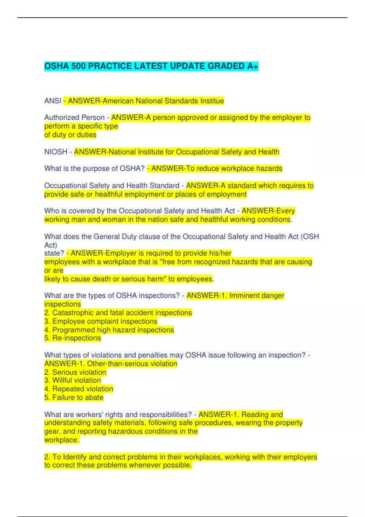 OSHA 500 PRACTICE LATEST UPDATE GRADED A+
