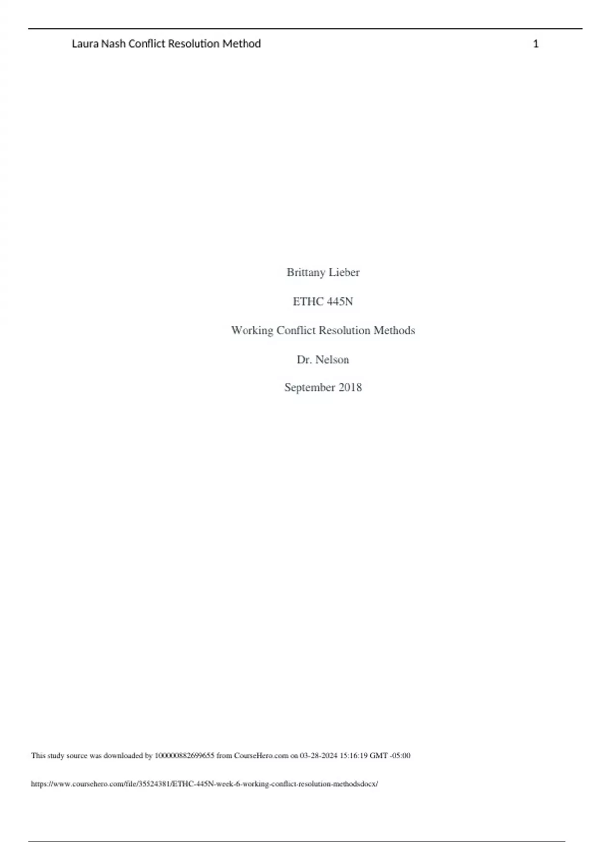 ETHC 445N week 6 working conflict resolution methods