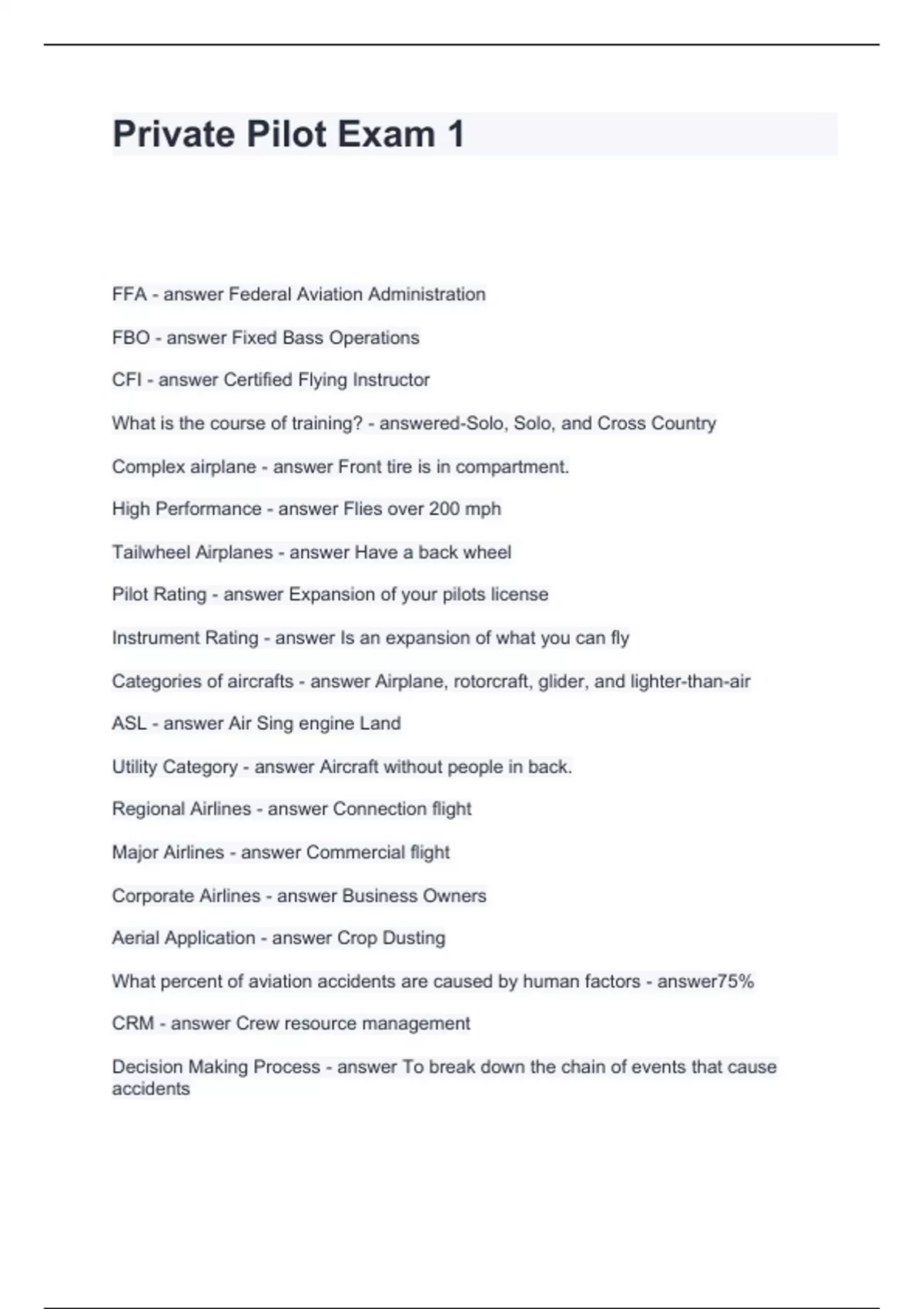 Private Pilot Exam 1