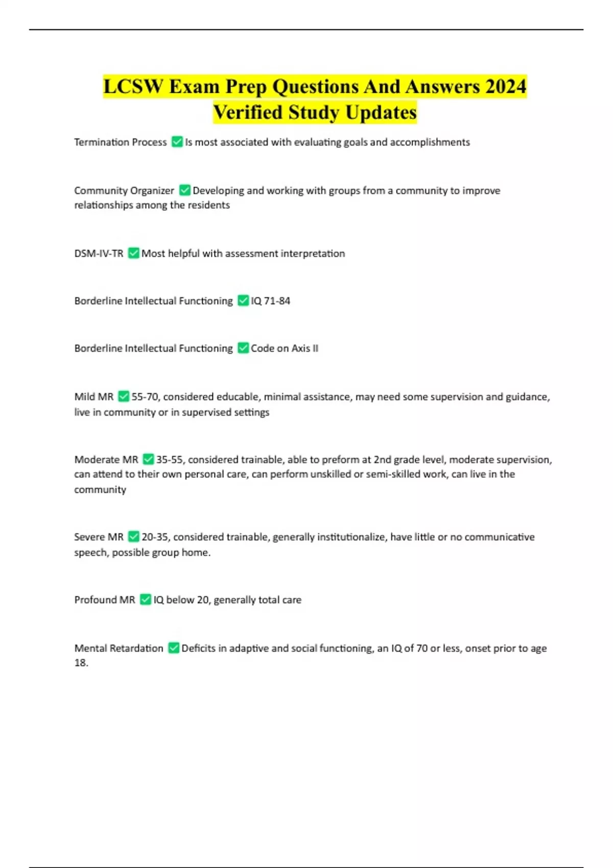 LCSW Exam Prep Questions And Answers 2024 Verified Study Updates LCSW Exam Prep Questions And Answers 2024 Verified Study Updates