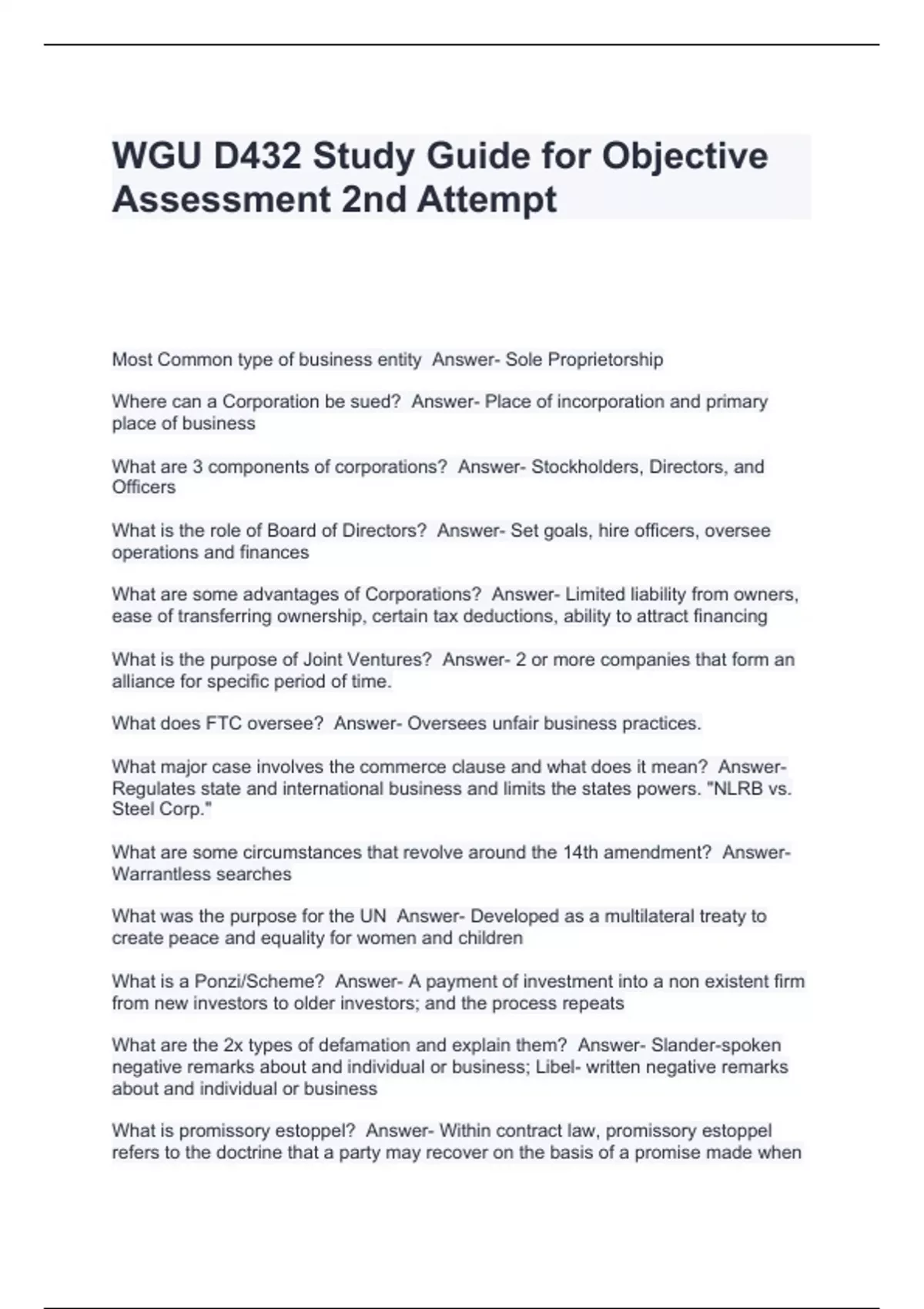 wgu d432 study guide for objective assessment 2nd