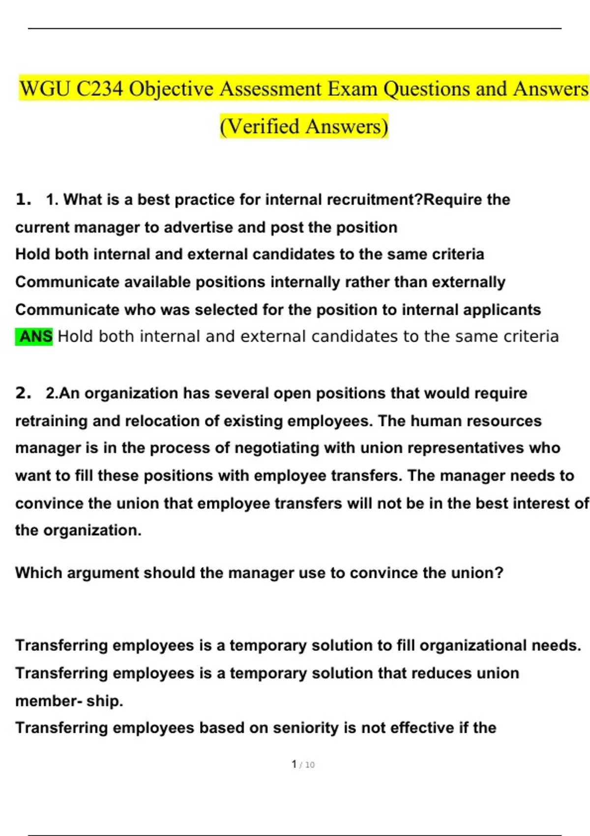 wgu c234 objective assessment exam questions and a