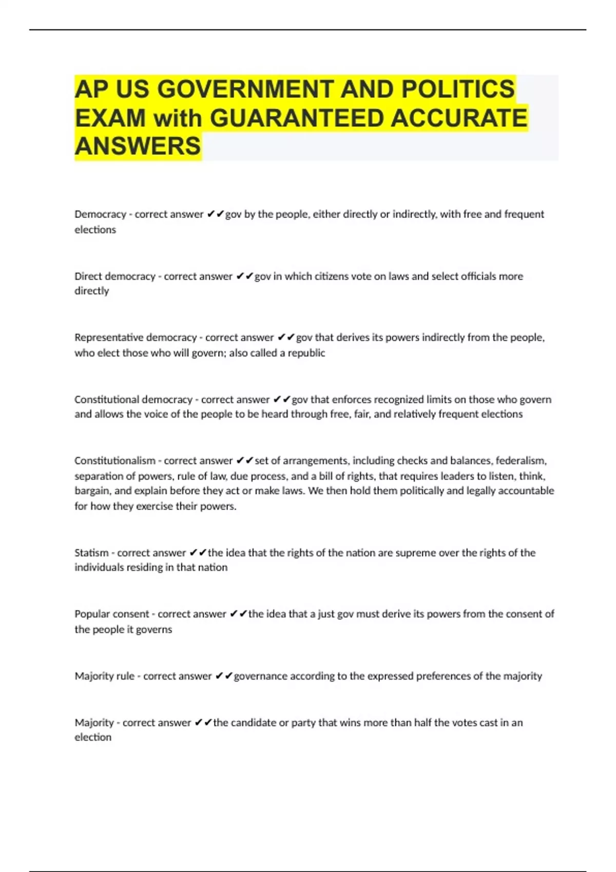 AP US GOVERNMENT AND POLITICS EXAM with GUARANTEED ACCURATE ANSWERS