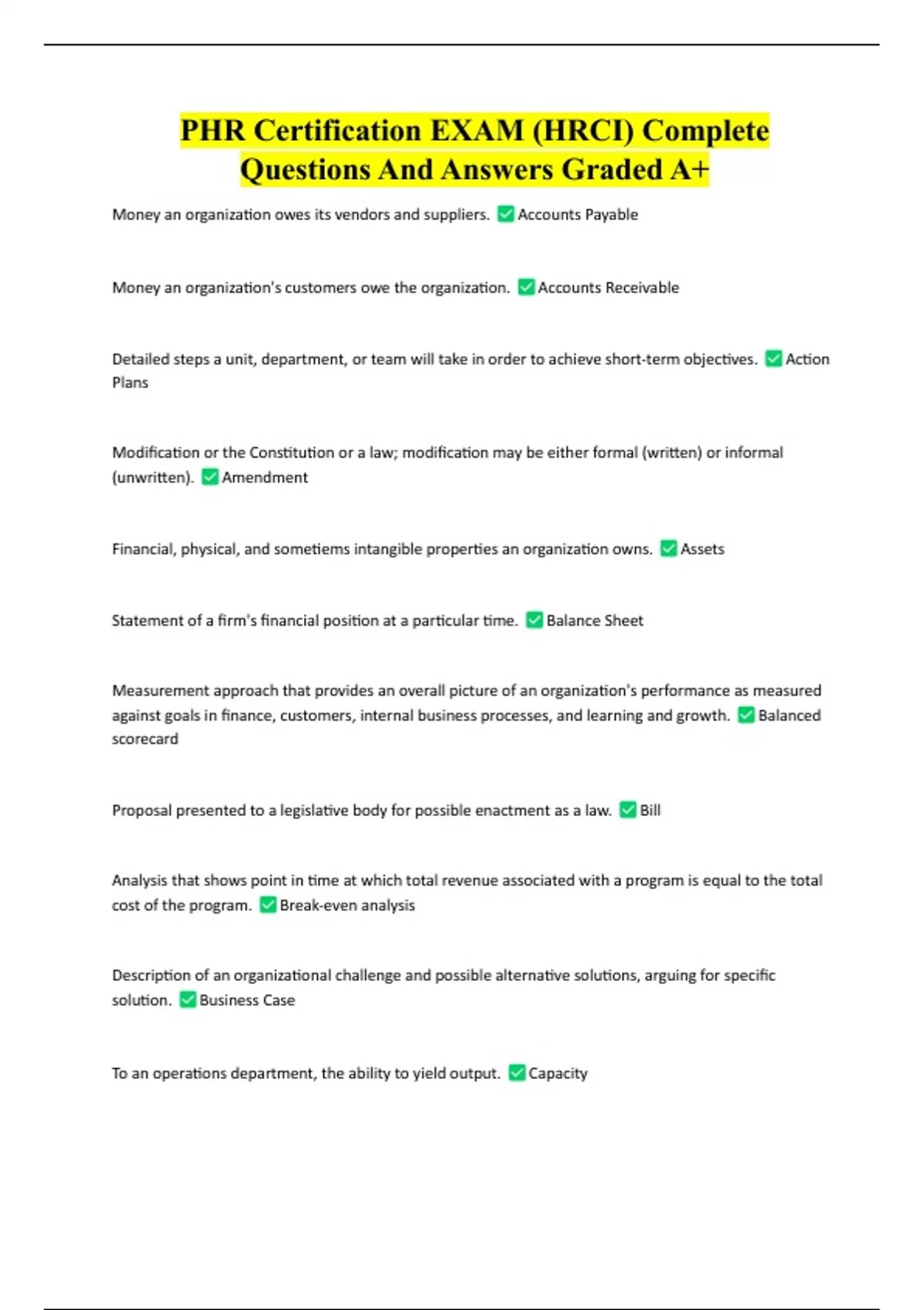 PHR Certification EXAM (HRCI) Complete Questions And Answers Graded A+