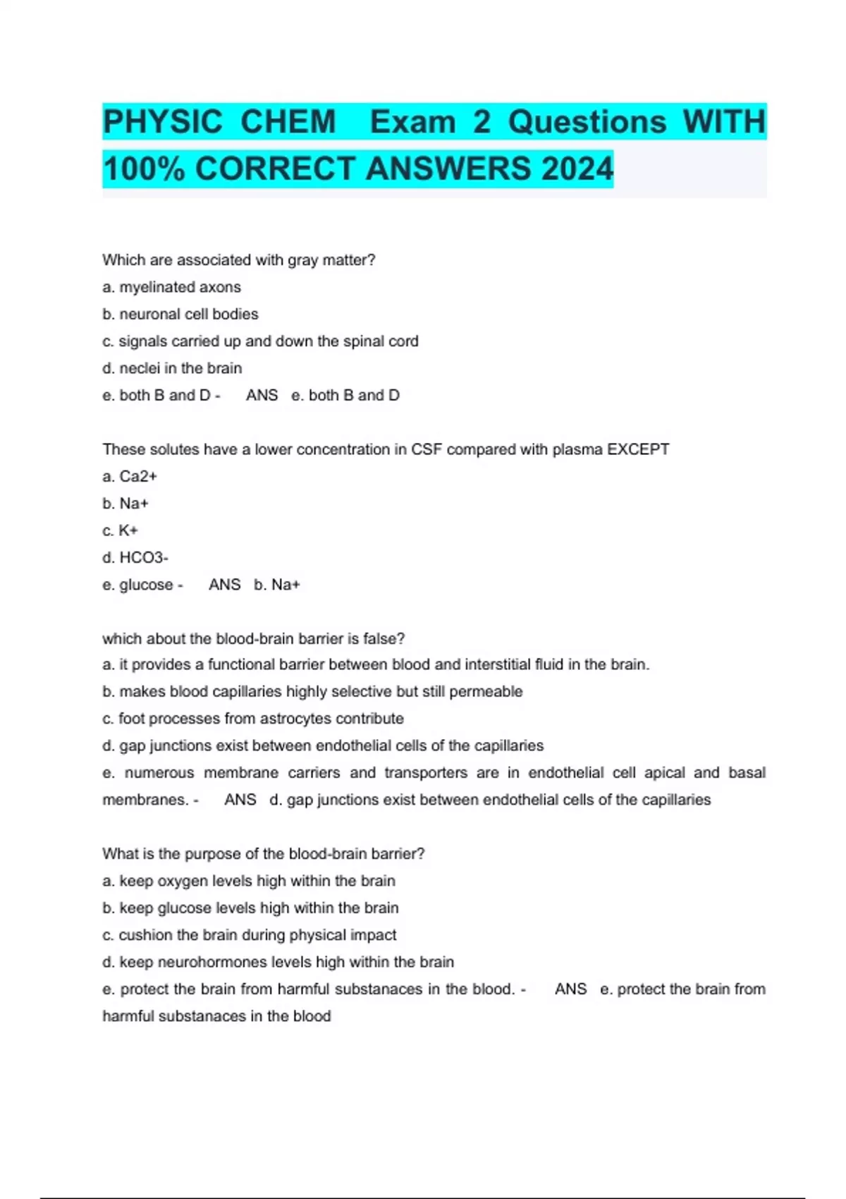 PHYSIC CHEM Exam 2 Questions WITH 100% CORRECT ANSWERS 2024