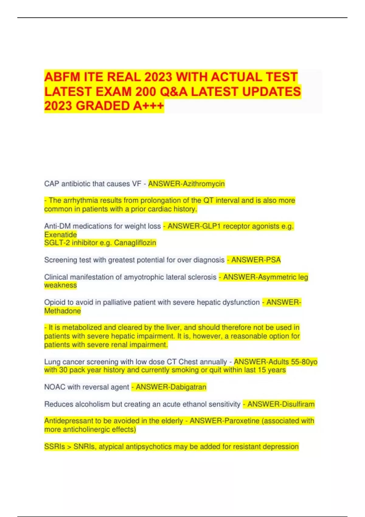 ABFM ITE REAL 2023 WITH ACTUAL TEST LATEST EXAM 200 Q&A LATEST UPDATES 2023 GRADED A+++