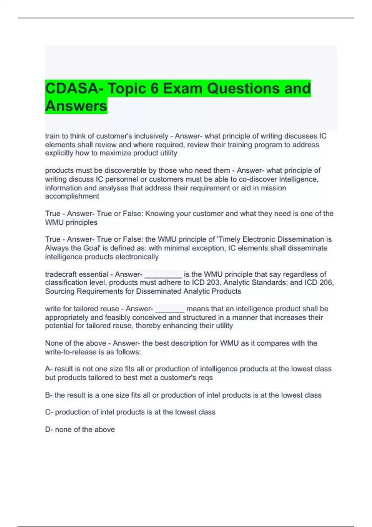 CDASA- Topic 6 Exam Questions and Answers 2024 (Graded A)