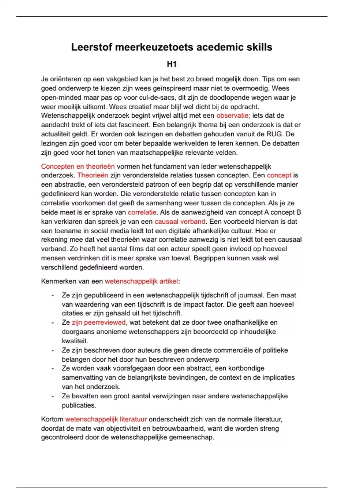 In dit document wordt de stof behandeld die je nodig bent voor het maken van de midterm van Academic skills. Er wordt stof zowel uit het boek en van de hoorcollege behandeld.