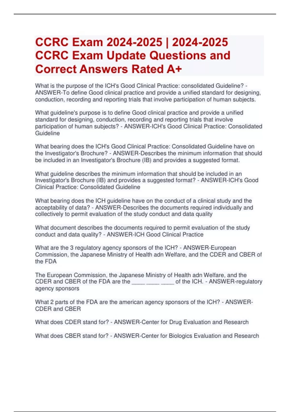CCRC Exam | CCRC Exam Update Questions and Correct Answers Rated A+