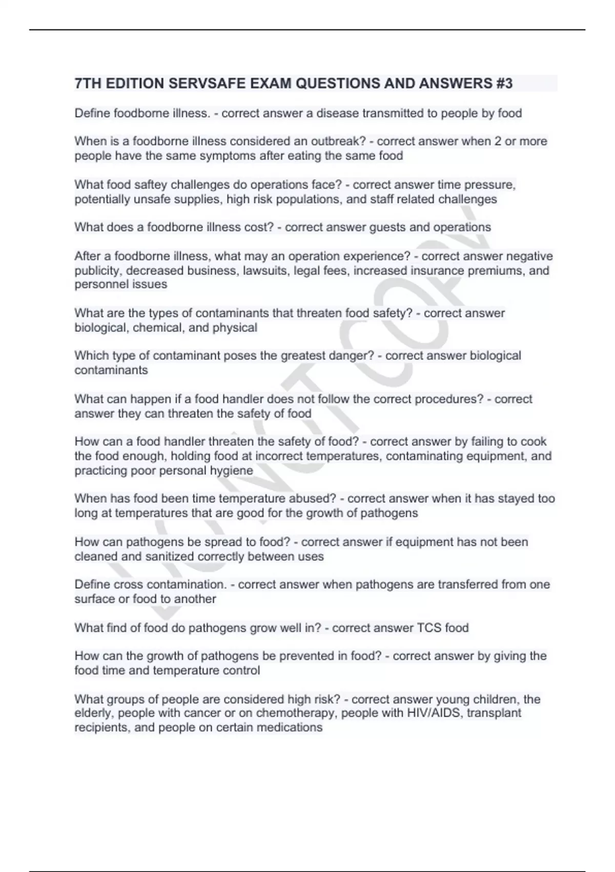 7TH EDITION SERVSAFE EXAM QUESTIONS AND ANSWERS #3.