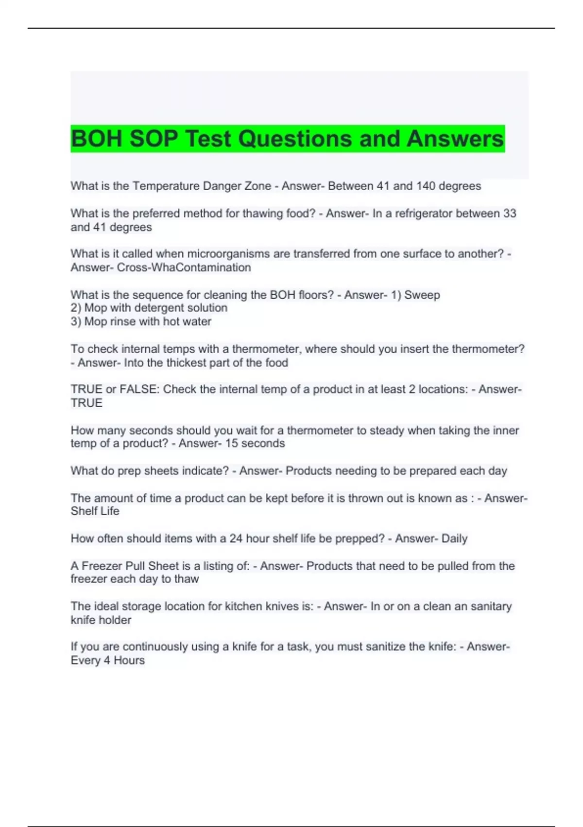 BOH SOP Test Questions and Answers 100% correct