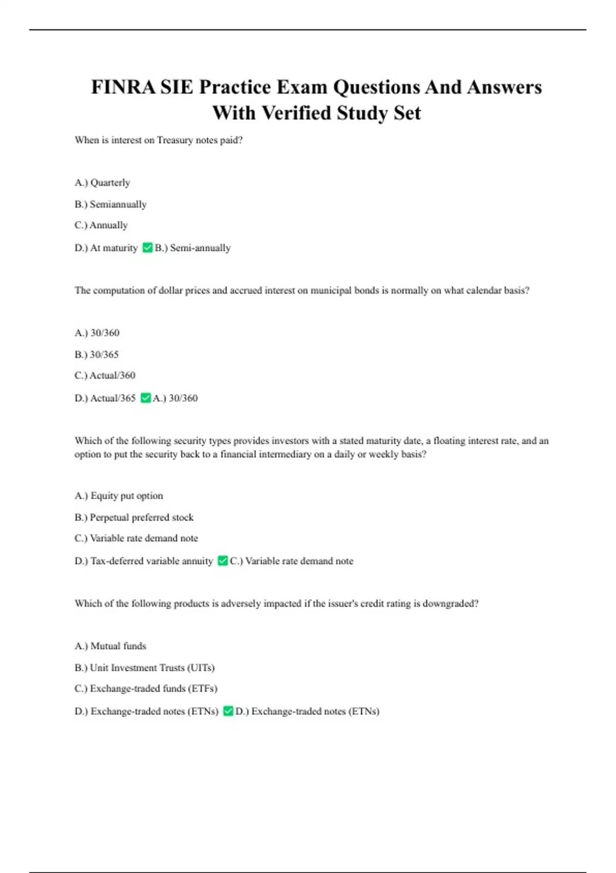 FINRA SIE Practice Exam Questions And Answers With Verified Study Set