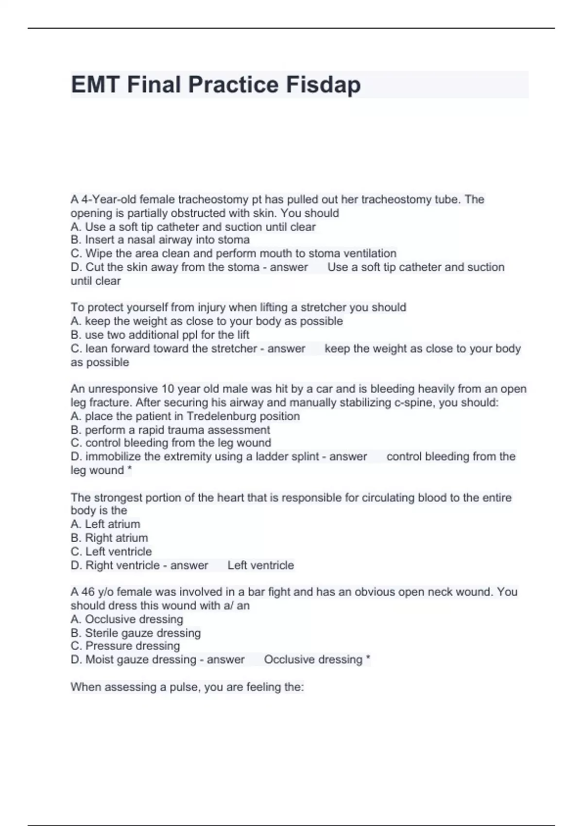 EMT Final Practice Fisdap