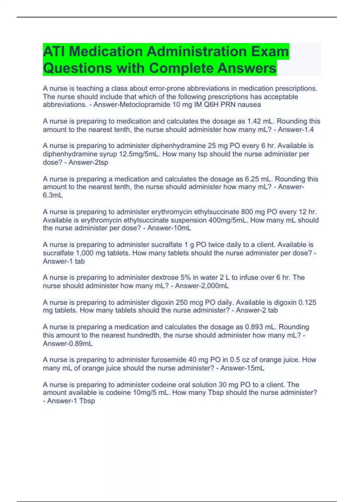 the nurse administer per dose? - Answer-10mL