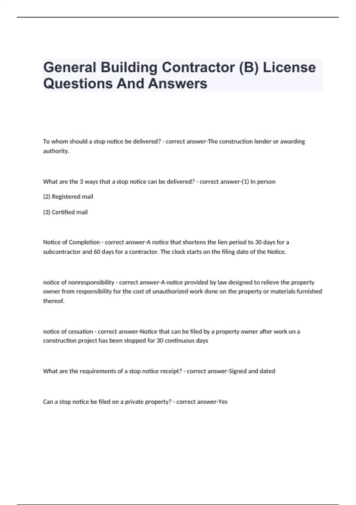 General Building Contractor (B) License Questions And Answers