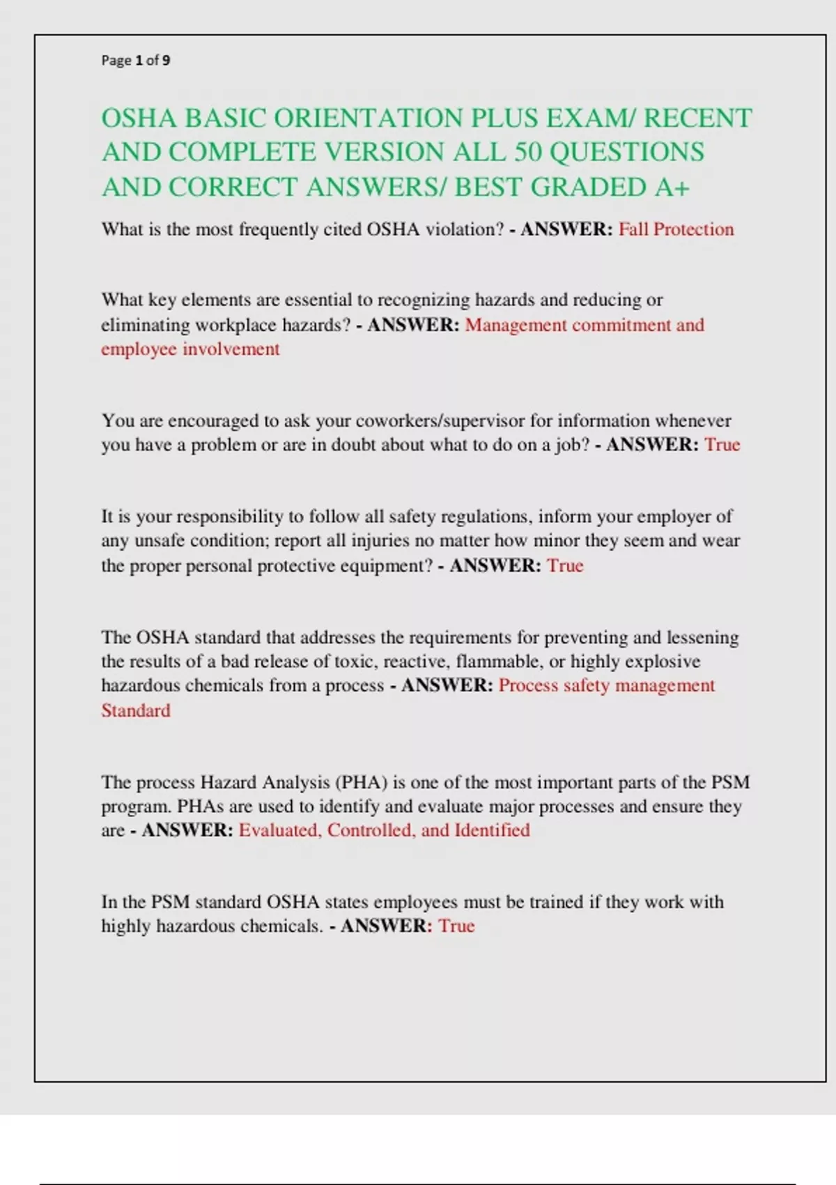 OSHA BASIC ORIENTATION PLUS EXAM/ RECENT AND COMPLETE VERSION ALL 50 QUESTIONS AND CORRECT ANSWERS/ BEST GRADED A+