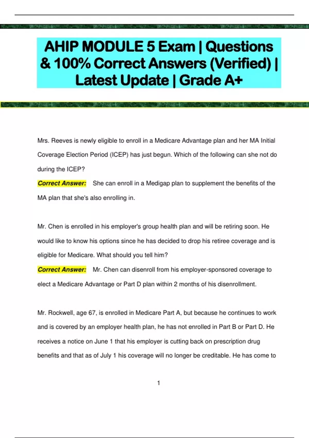 AHIP MODULE 5 Exam | Questions & 100% Correct Answers (Verified) | Latest Update | Grade A+