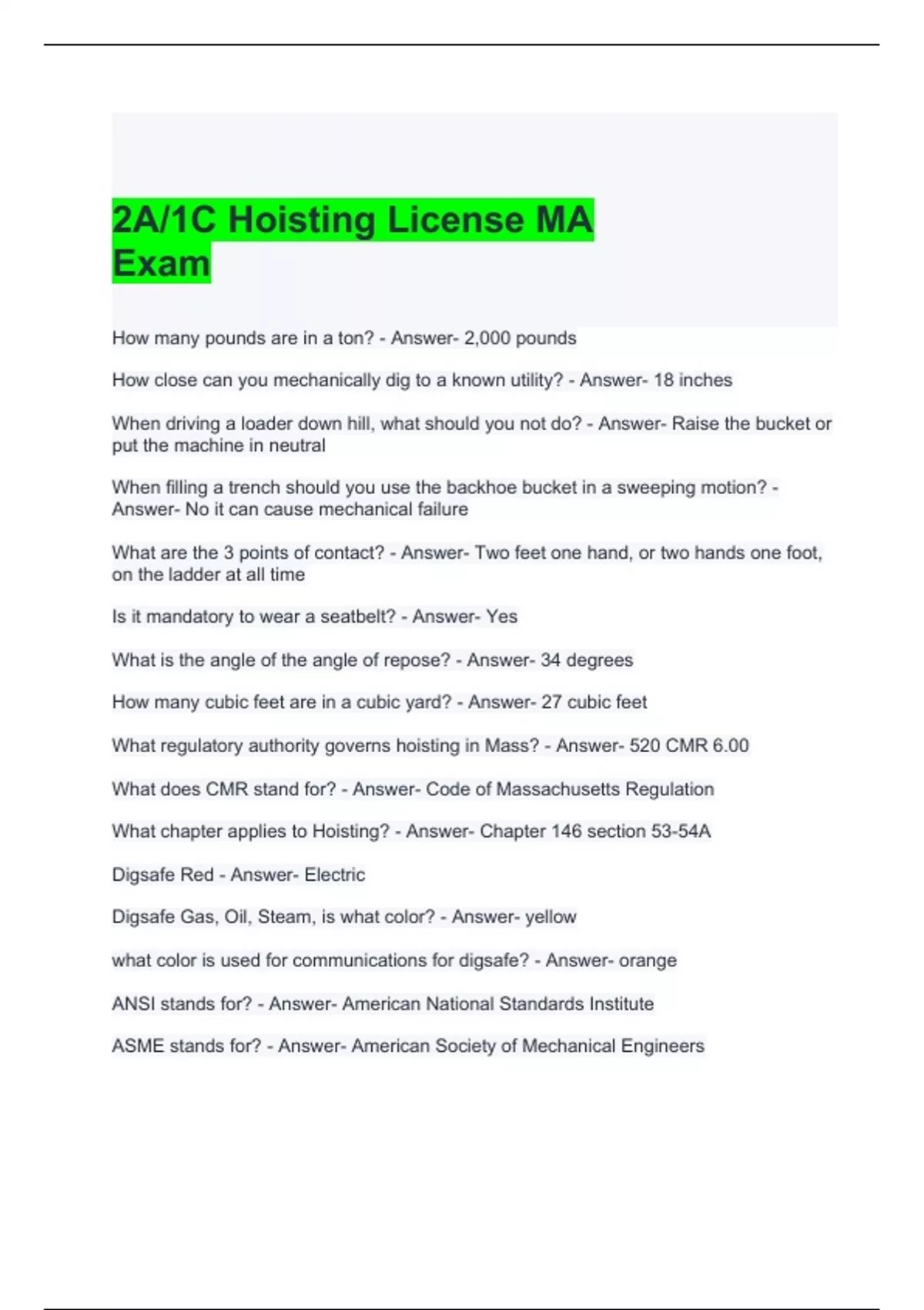 2A-1C Hoisting License MA Exam