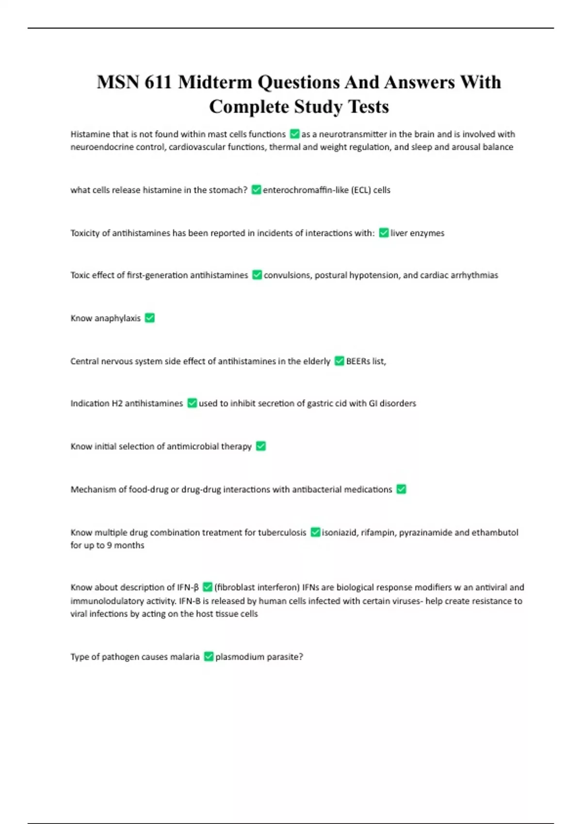 MSN 611 Midterm Questions And Answers With Complete Study Tests MSN 611 Midterm Questions And Answers With Complete Study Tests