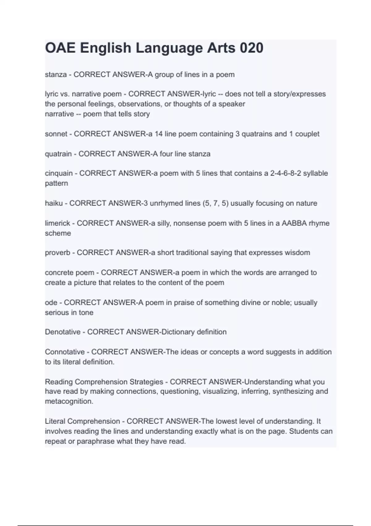 - OAE English Language Arts 020 stanza - CORECT ANS