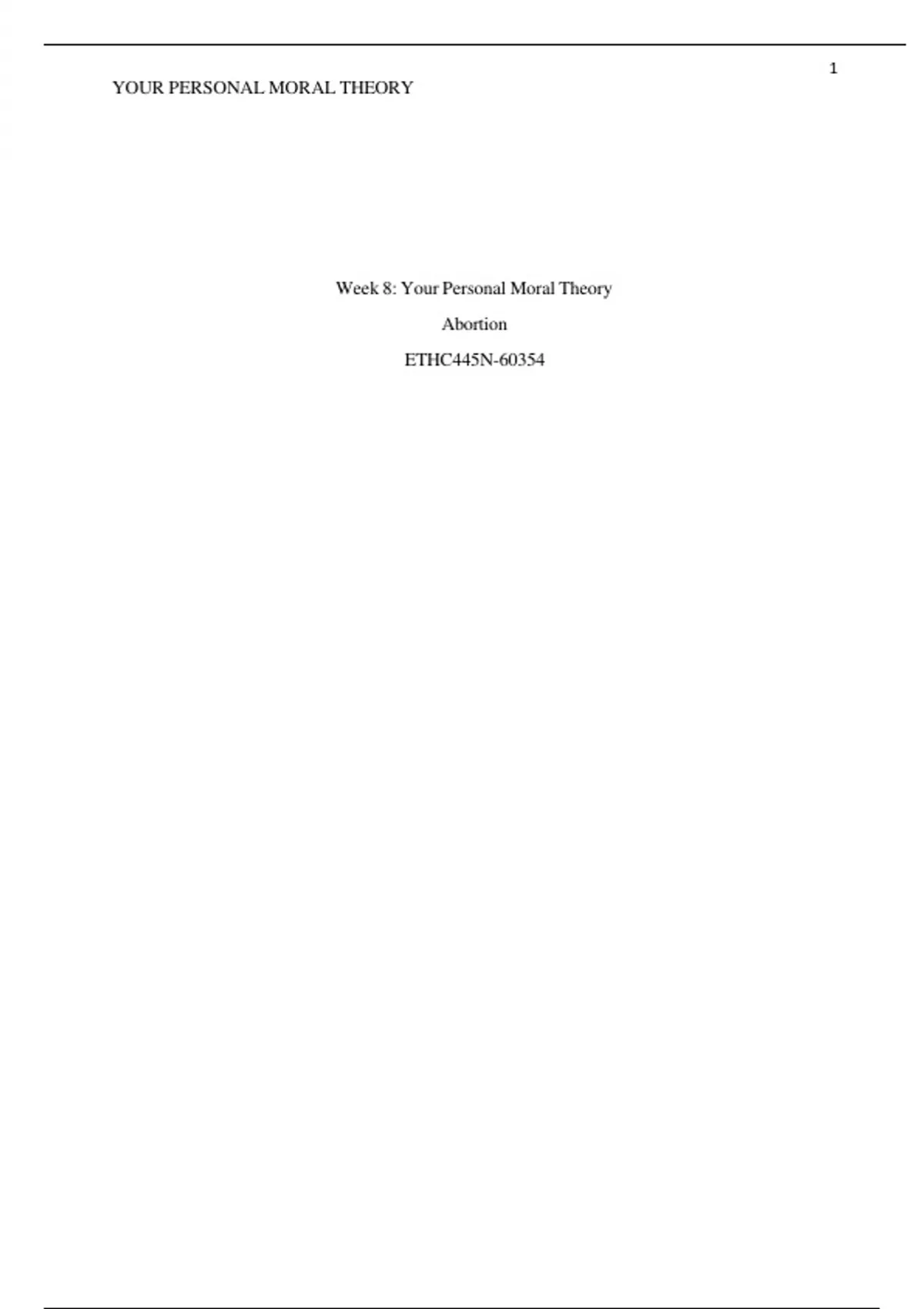 ETHC 445N Week 8 Your Personal Moral Theory
