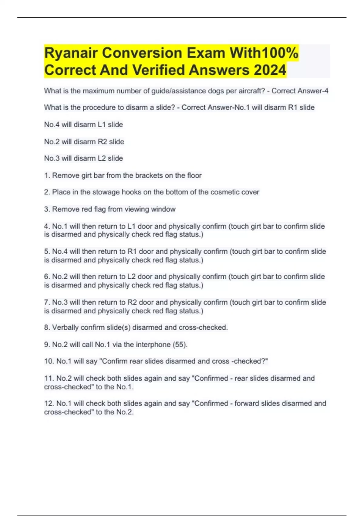 Ryanair Conversion Exam With100% Correct And Verified Answers 2024
