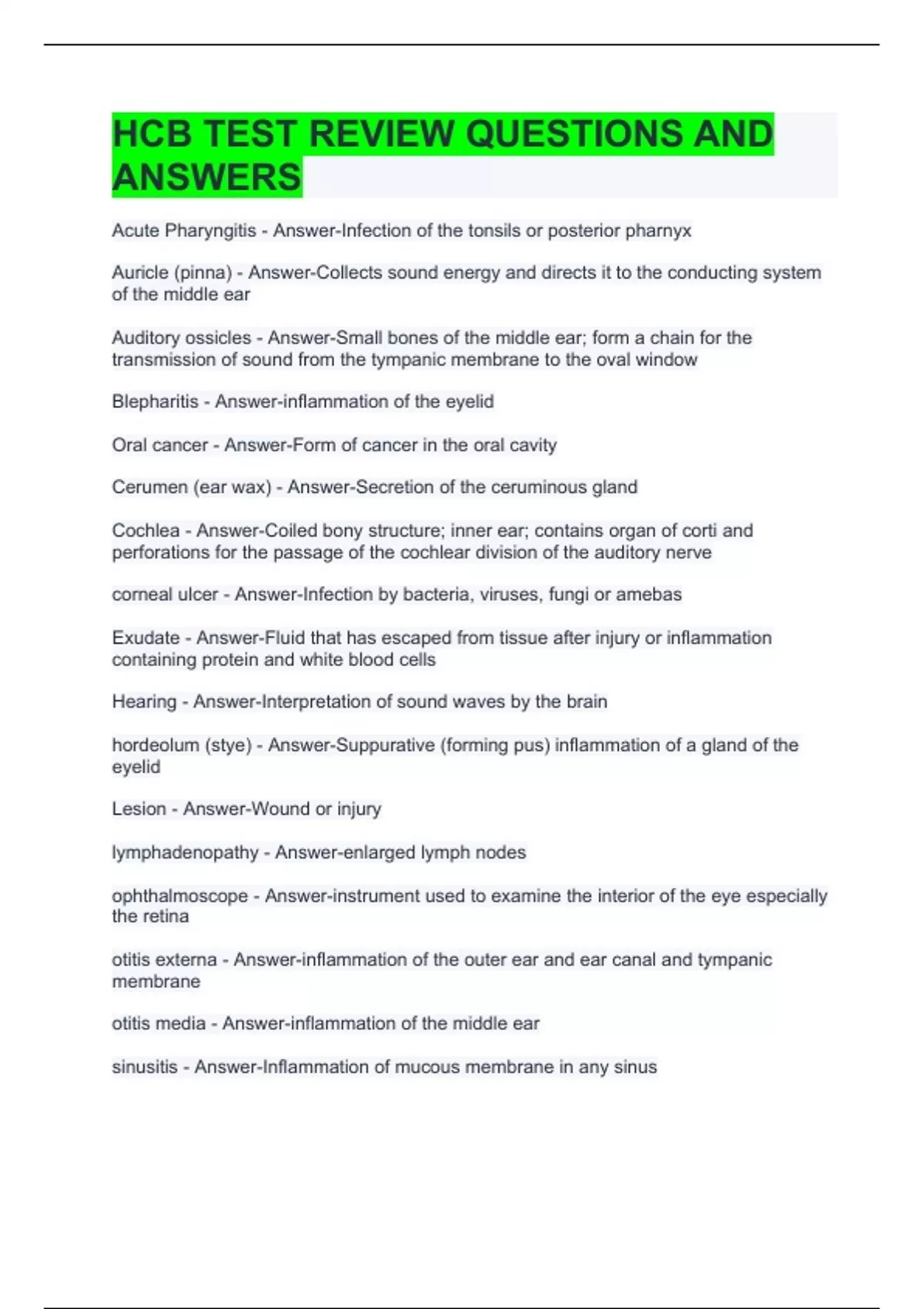 HCB TEST REVIEW QUESTIONS AND ANSWERS