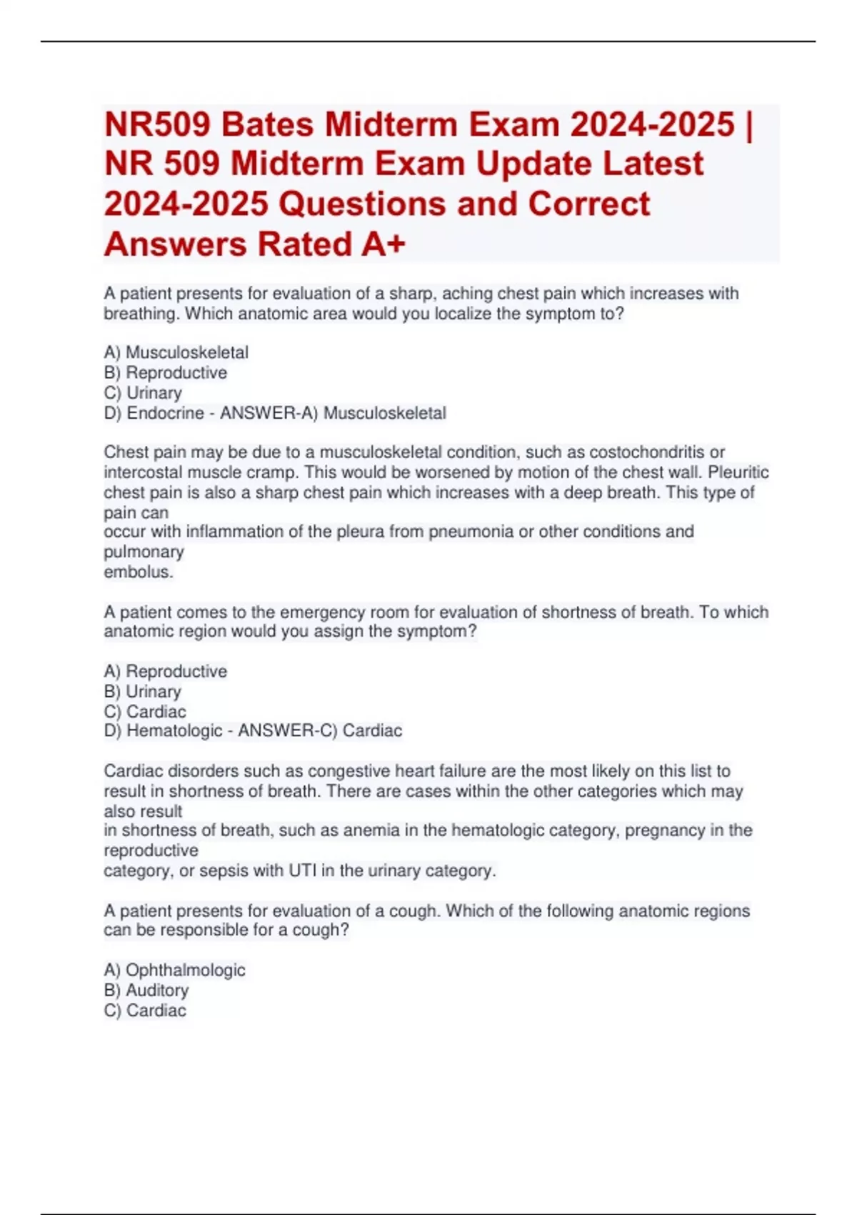 NR509 Bates Midterm Exam | NR 509 Midterm Exam Update Latest Questions and Correct Answers Rated A+