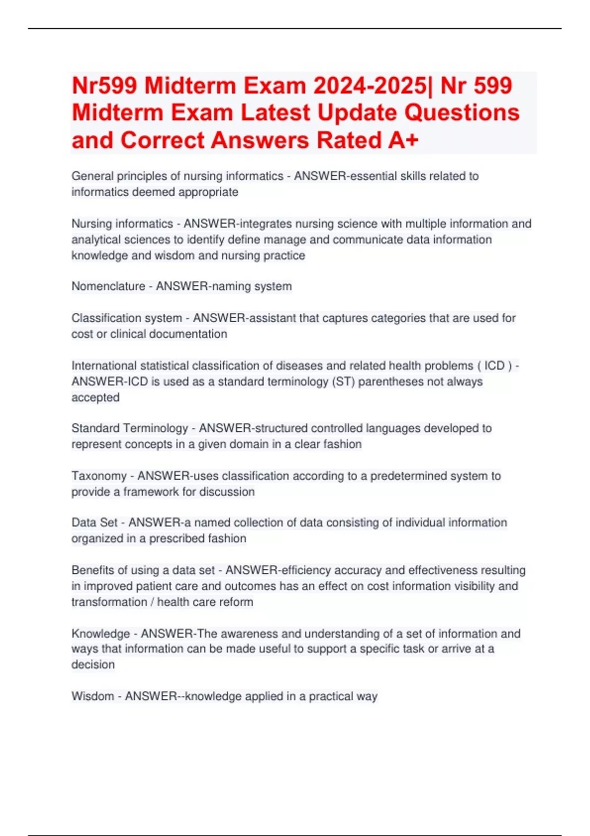Nr599 Midterm Exam | Nr 599 Midterm Exam Latest Update Questions and Correct Answers Rated A+