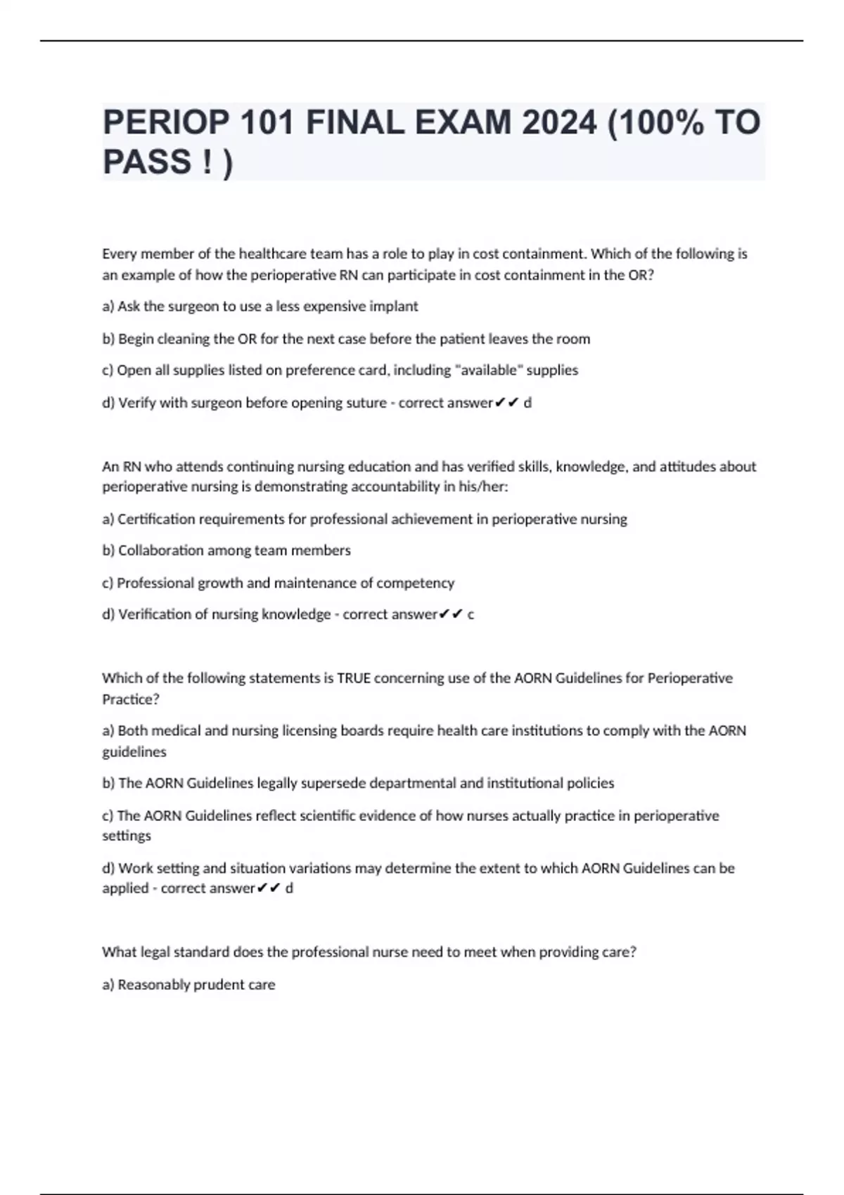 d) Verify with surgeon before opening suture - correct answer ✔✔ d