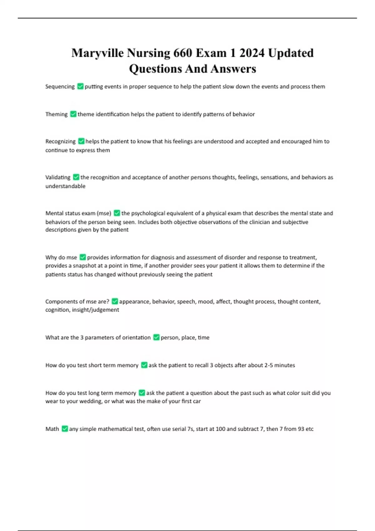 Maryville Nursing 660 Exam 1 2024 Updated Questions And Answers Maryville Nursing 660 Exam 1 2024 Updated Questions And Answers