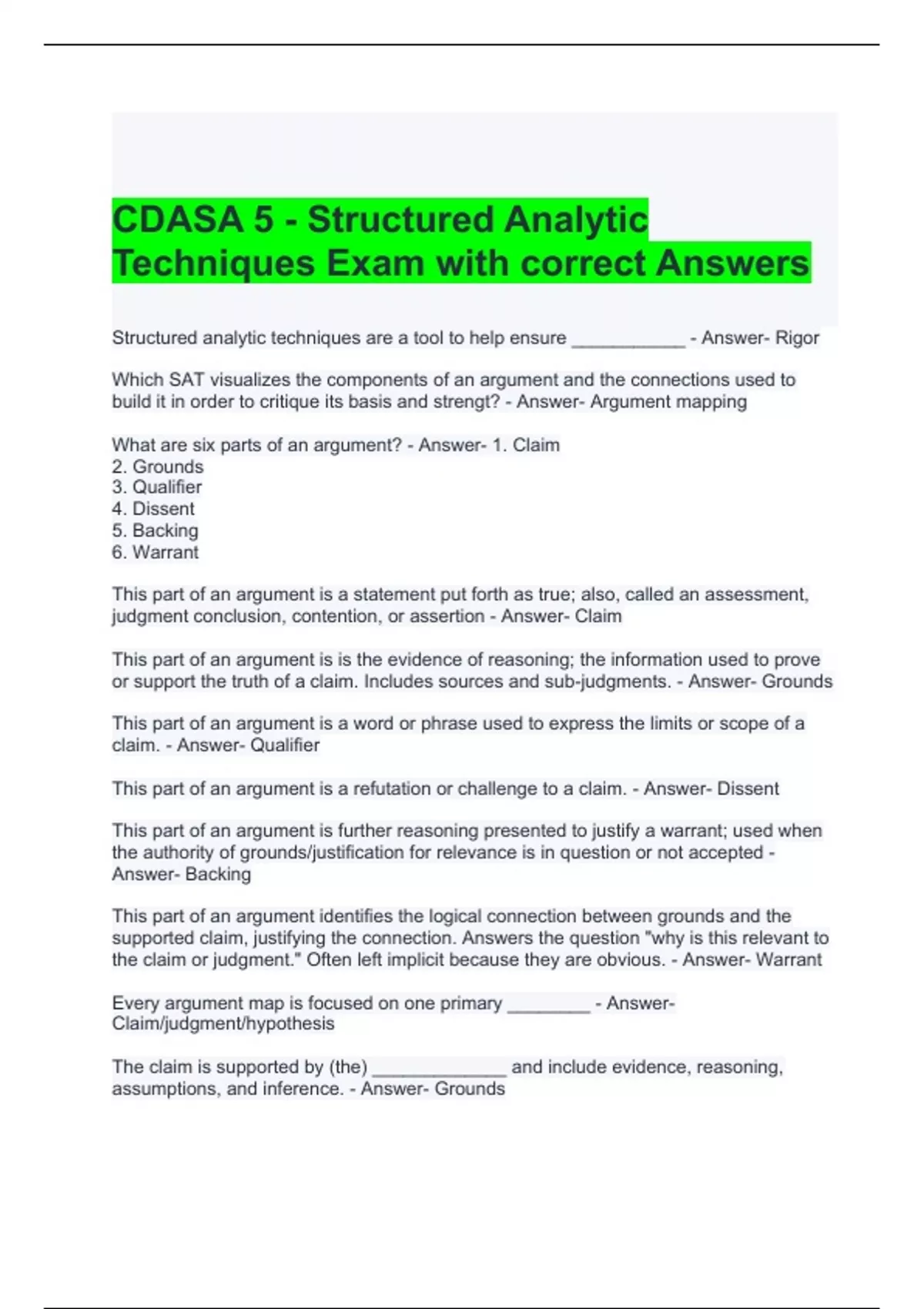CDASA 5 - Structured Analytic Techniques Exam with correct Answers