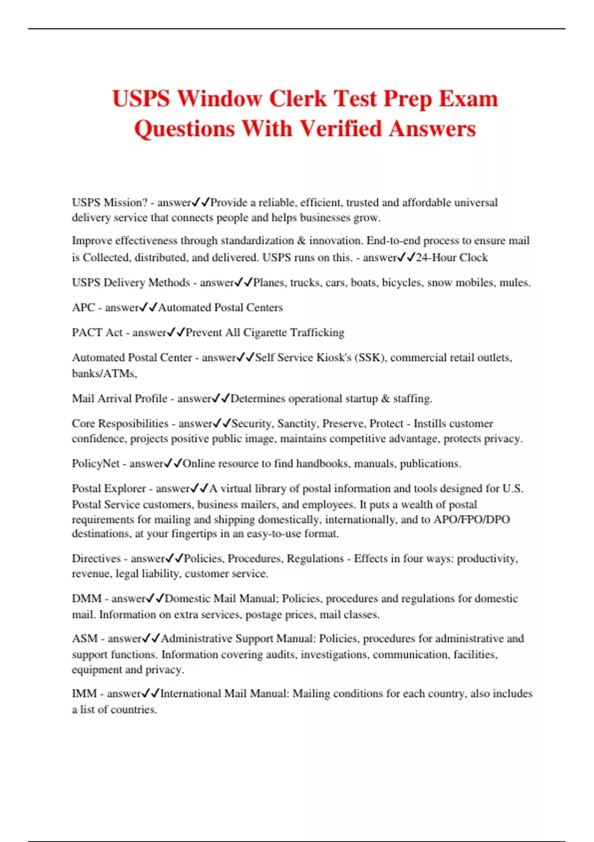 USPS Window Clerk Test Prep Exam Questions With Verified Answers