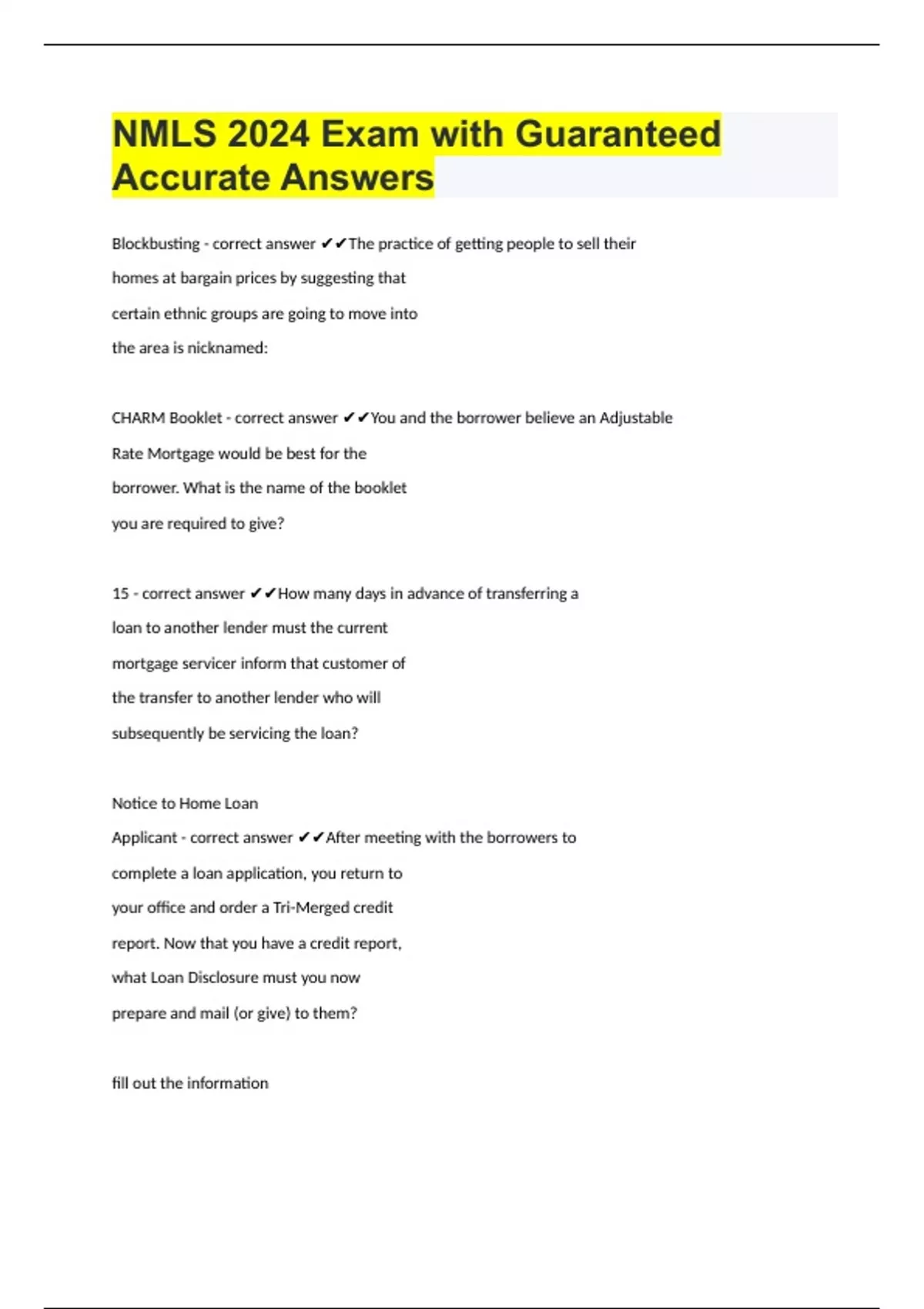 NMLS 2024 Exam with Guaranteed Accurate Answers