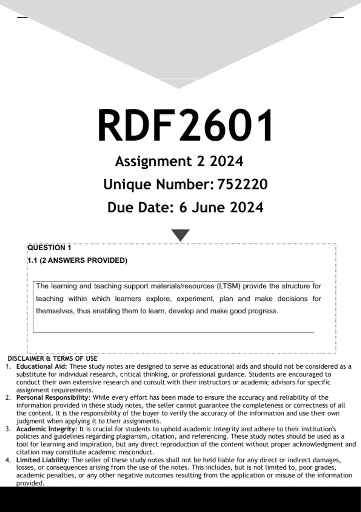 RDF2601 Assignment 2 (ANSWERS) 2024 - DISTINCTION GUARANTEED