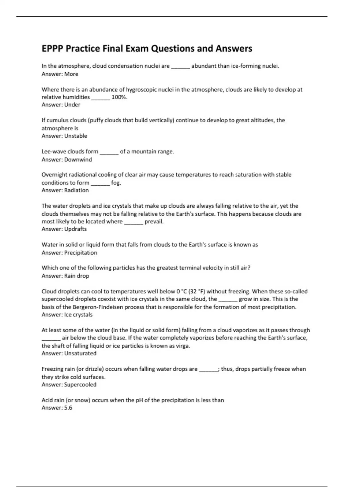 EPPP Practice Final Exam Questions and Answers EPPP Practice Final Exam EPPP Practice test Questions and Answers EPPP practice test EPPP Exam Secrets Study Guide EPPP Exam Study set