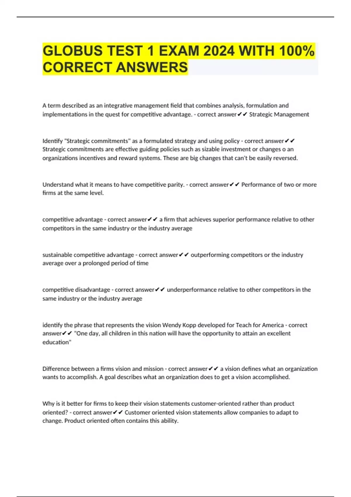 GLOBUS TEST 1 EXAM 2024 WITH 100% CORRECT ANSWERS