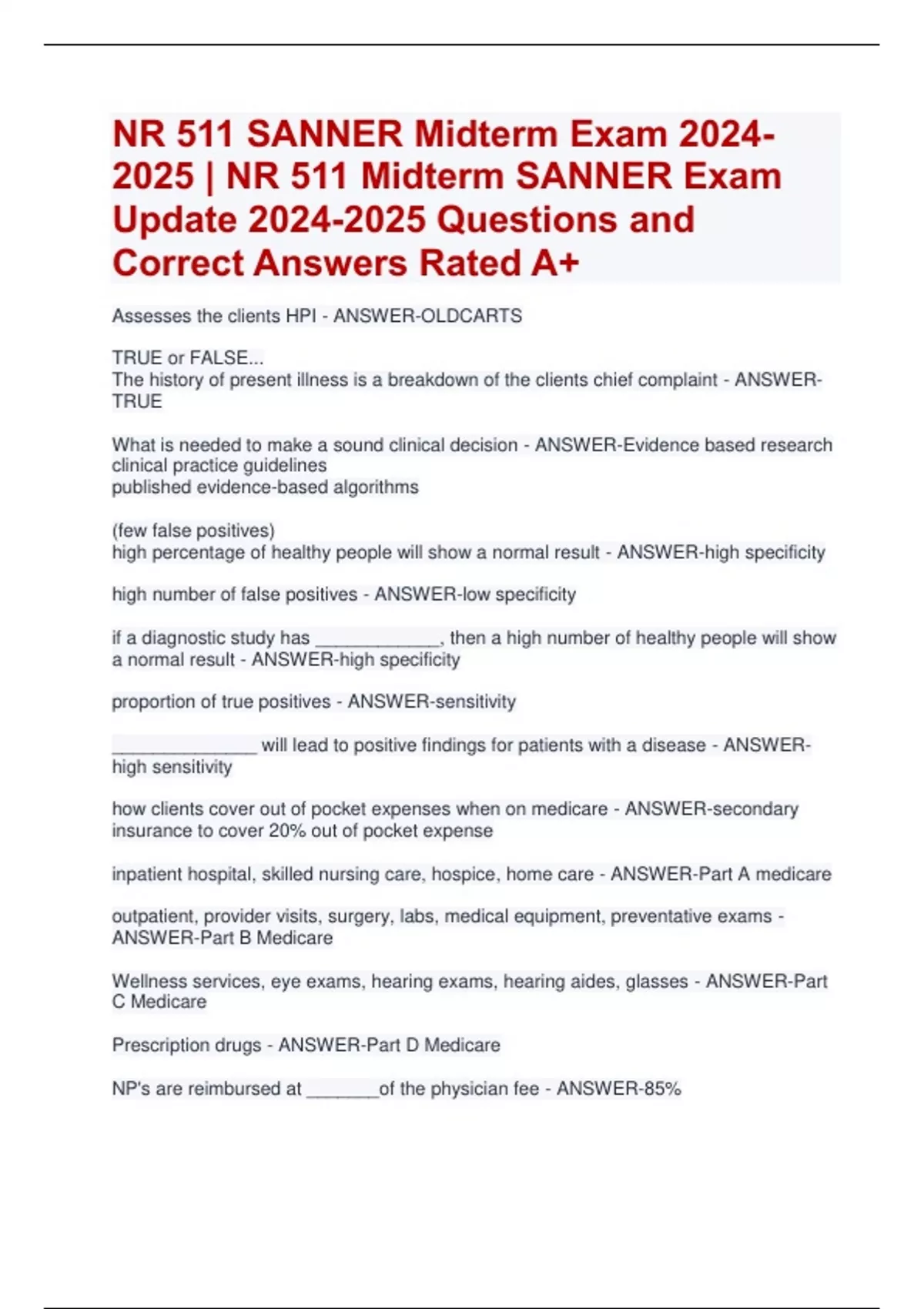 NR 511 SANNER Midterm Exam 2024- 2025 | NR 511 Midterm SANNER Exam Update Questions and Correct Answers Rated A+