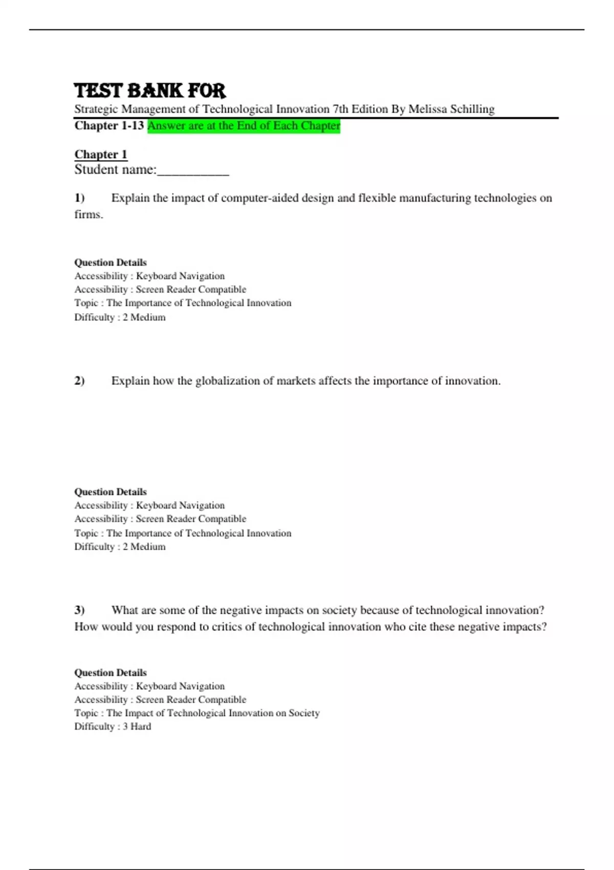 Test Bank For Strategic Management of Technological Innovation 7th Edition By Melissa Schilling Chapter 1-13