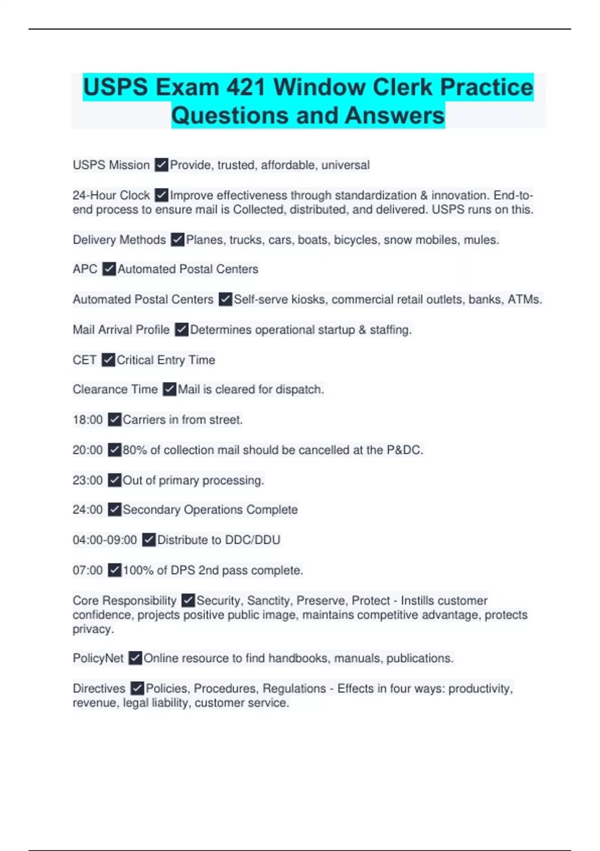 USPS Exam 421 Window Clerk Practice Questions and Answers