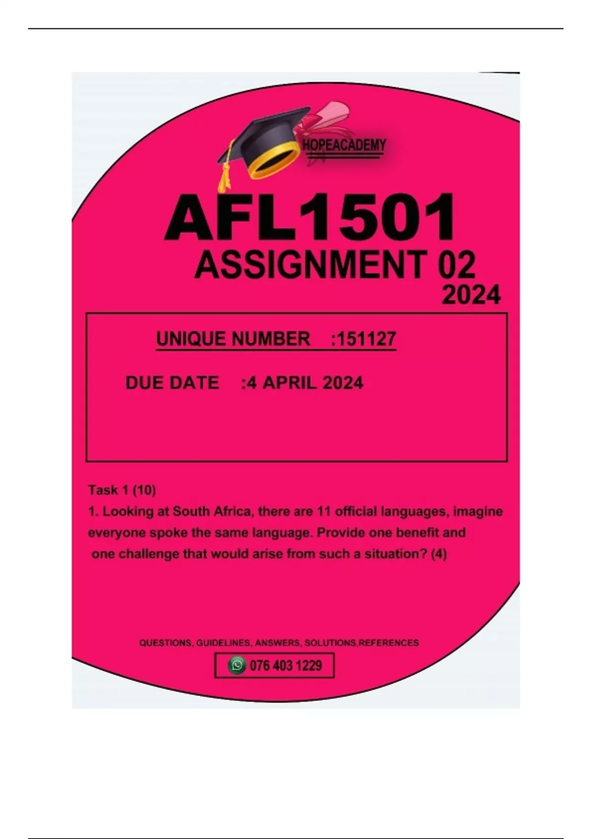 , AFL 1501 ASSESSMENT 2 DUE 4 APRIL