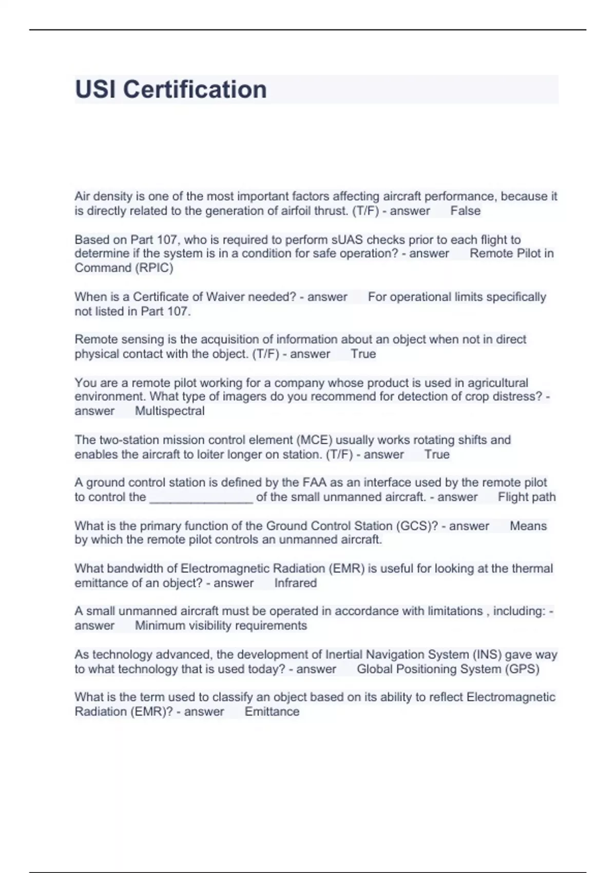 USI Certification Questions and Answers 2024