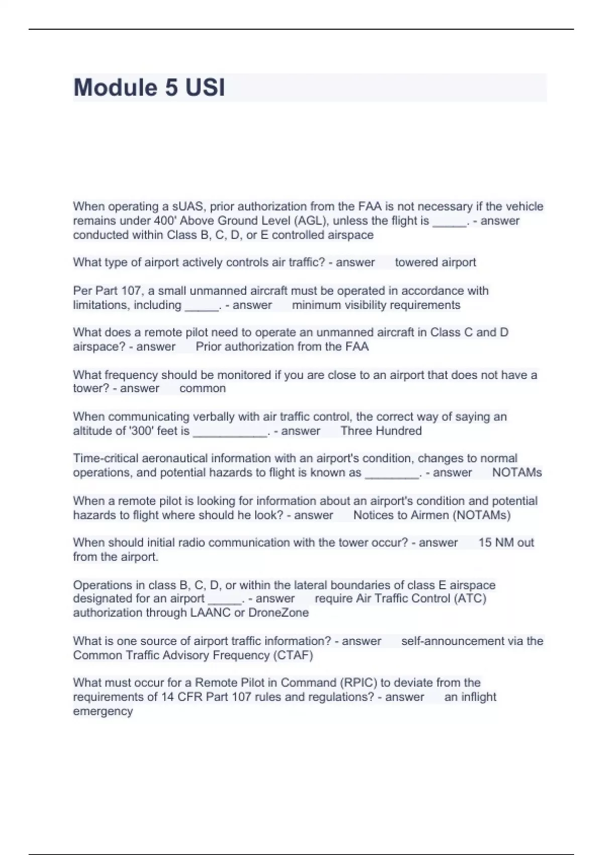 Module 5 USI Questions and Answers 2024