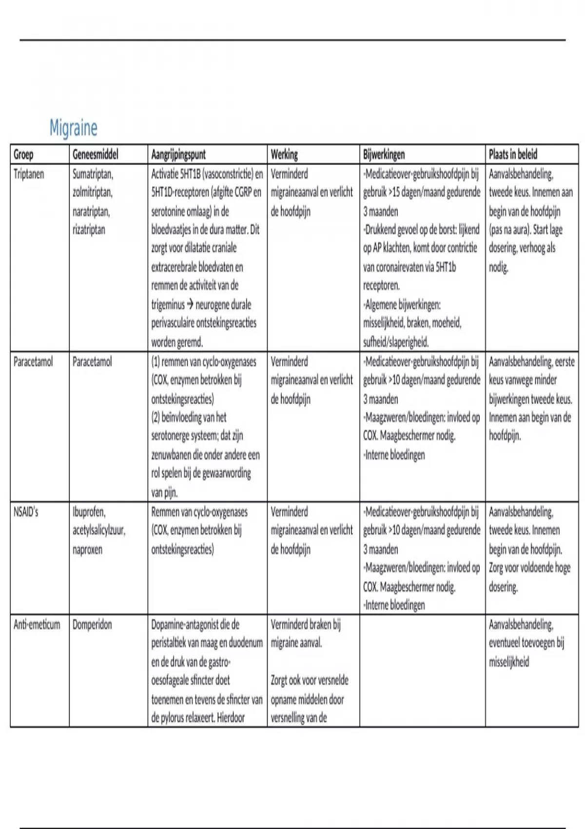 (COX, enzymen betrokken bij migraineaanval en verlicht gebruik >10 dagen/maand gedurende keus vanwege minder
