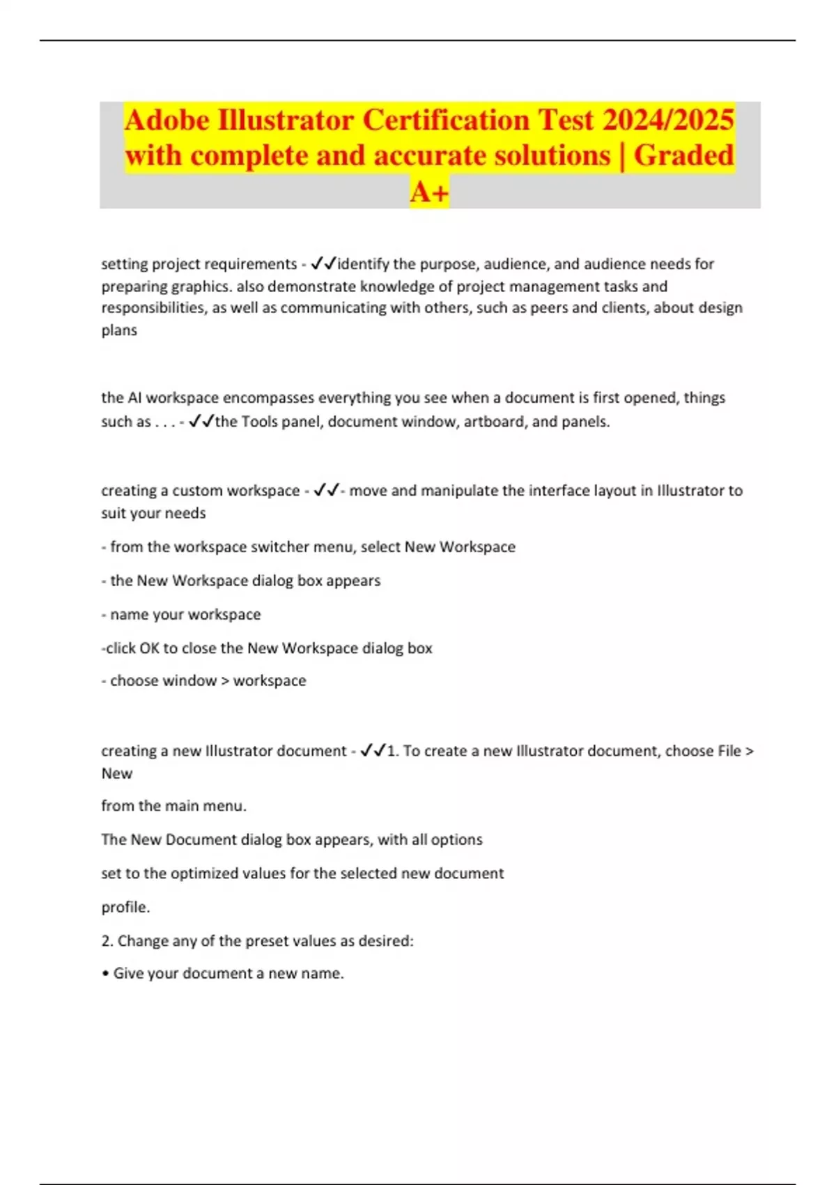 Adobe Illustrator Certification Test 2024/2025 with complete and accurate solutions | Graded A+