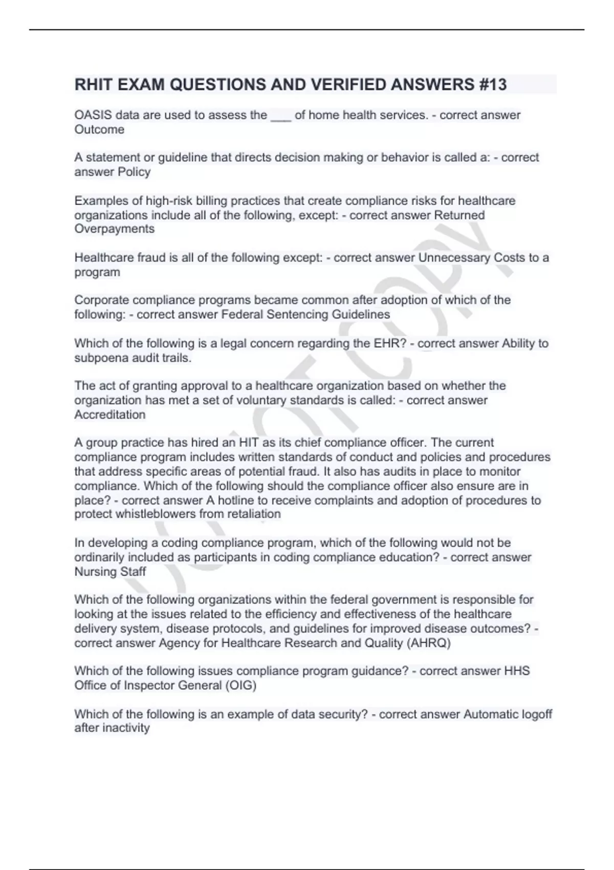 RHIT EXAM QUESTIONS AND VERIFIED ANSWERS #13