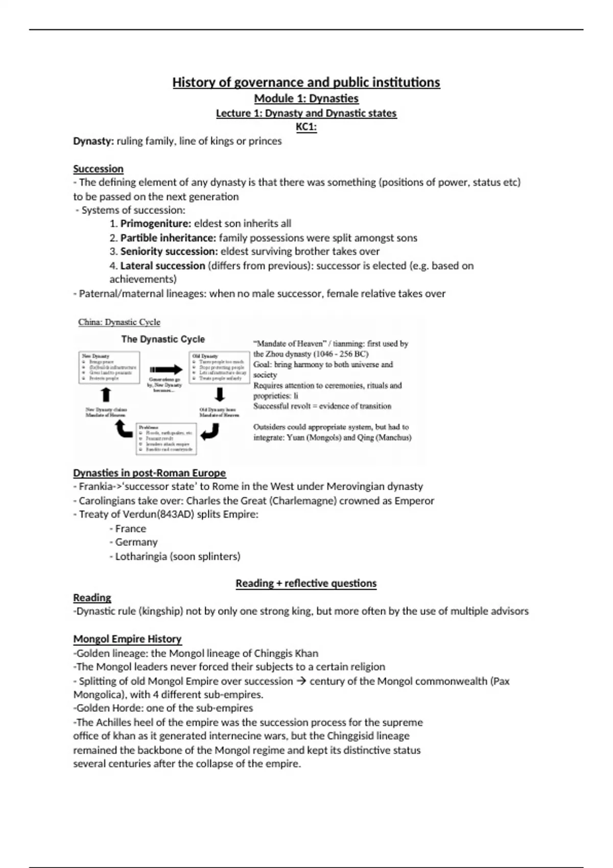 - The defining element of any dynasty is that there was something (positions of power, status etc)