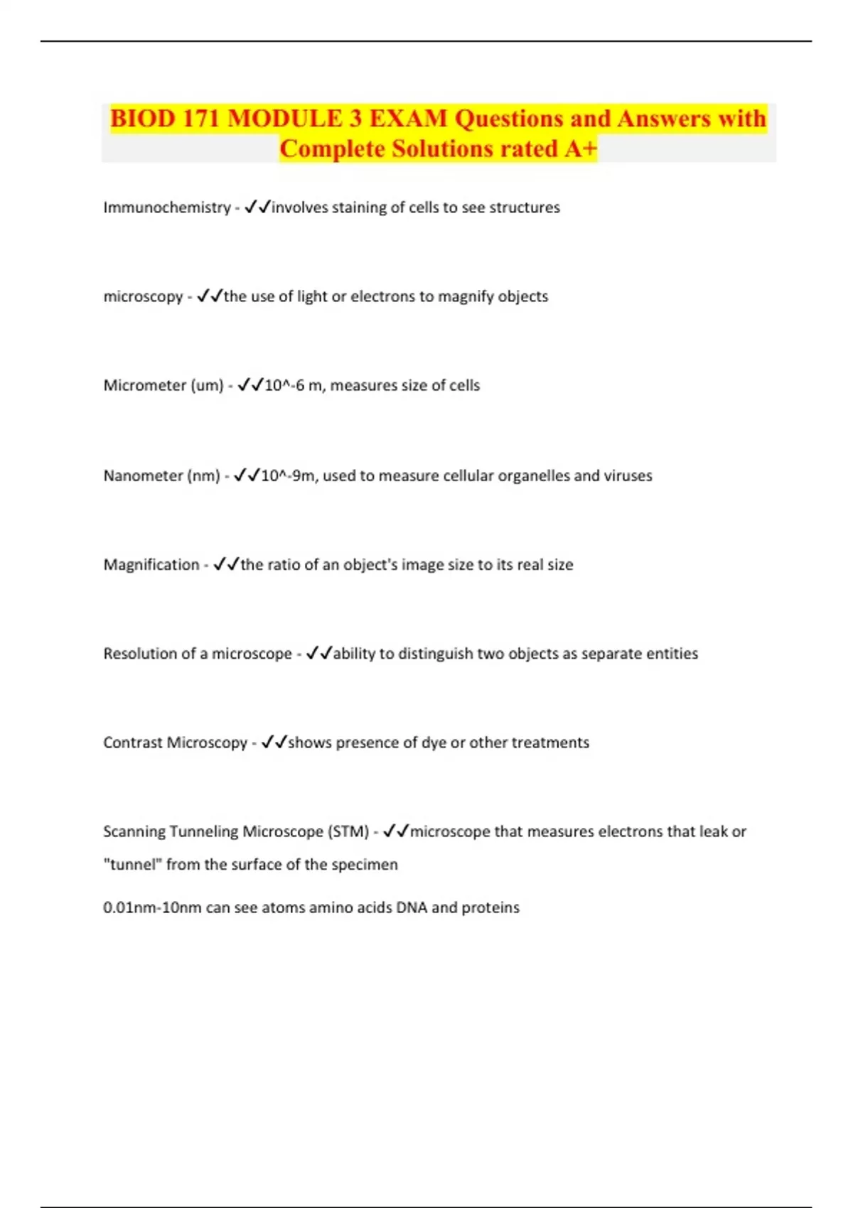 BIOD 171 MODULE 3 EXAM Questions and Answers with Complete Solutions rated A+