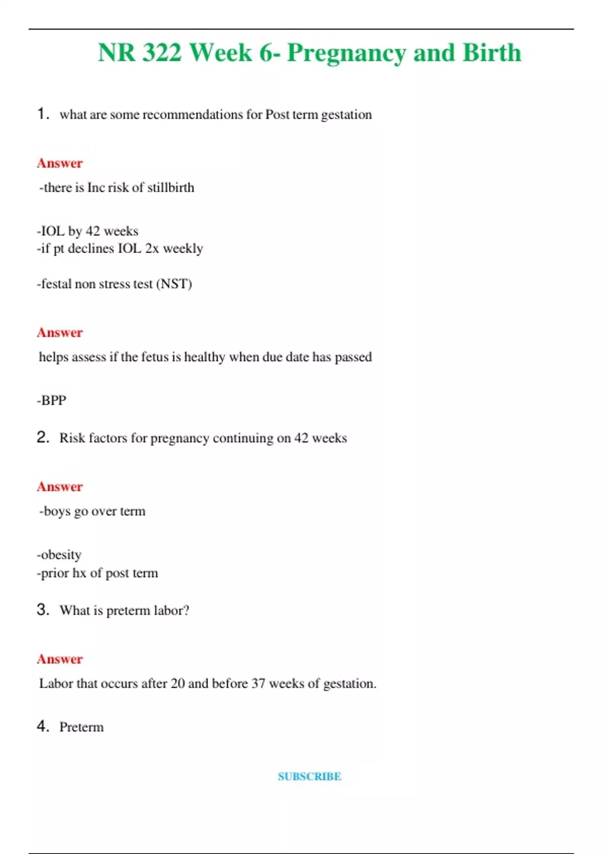 NR 322 (Latest 2024 / 2025) Week 6- Pregnancy and Birth Questions & Answers with rationales