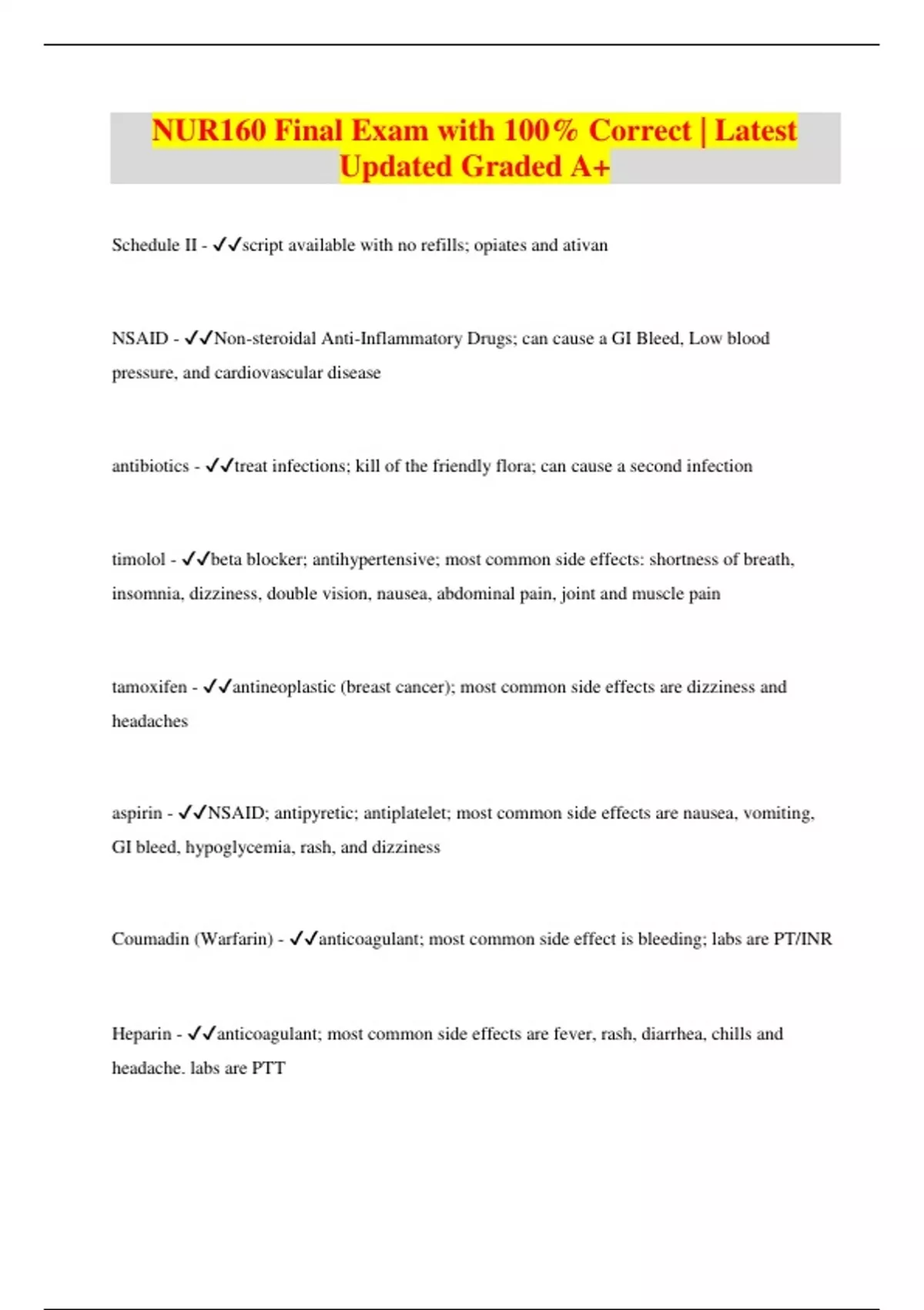 NUR160 Final Exam with 100% Correct | Latest Updated Graded A